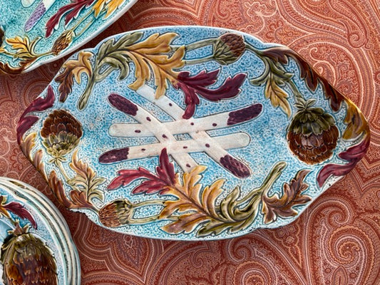 Service à asperges et artichauts en barbotine bleue - Orchies