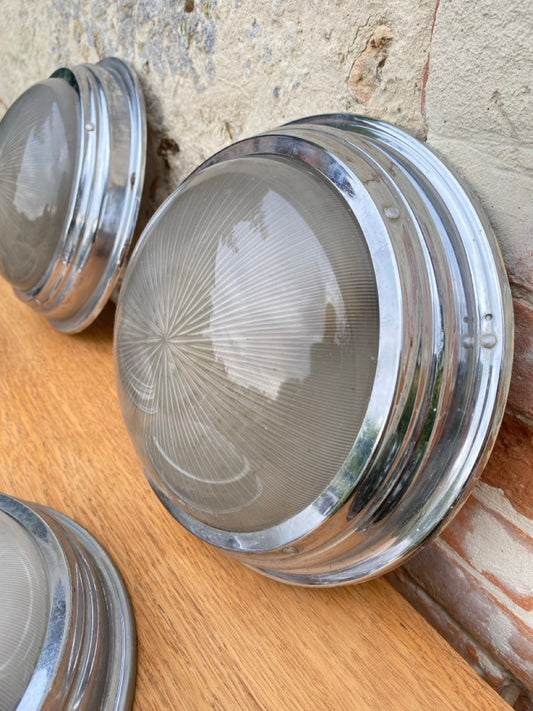 Appliques murales vintage Holophane de style Art Déco - Verre et chrome