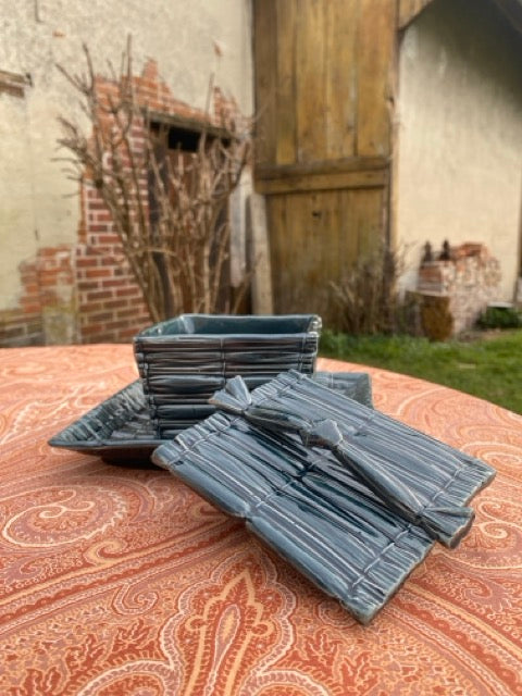 Boîte ou beurrier en barbotine de Longchamp - imitation paille