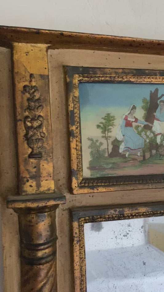 Miroir Trumeau Époque Restauration - Décor fixé Sous Verre - 88x60 cm |