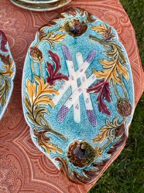 Service à asperges et artichauts en barbotine bleue - Orchies